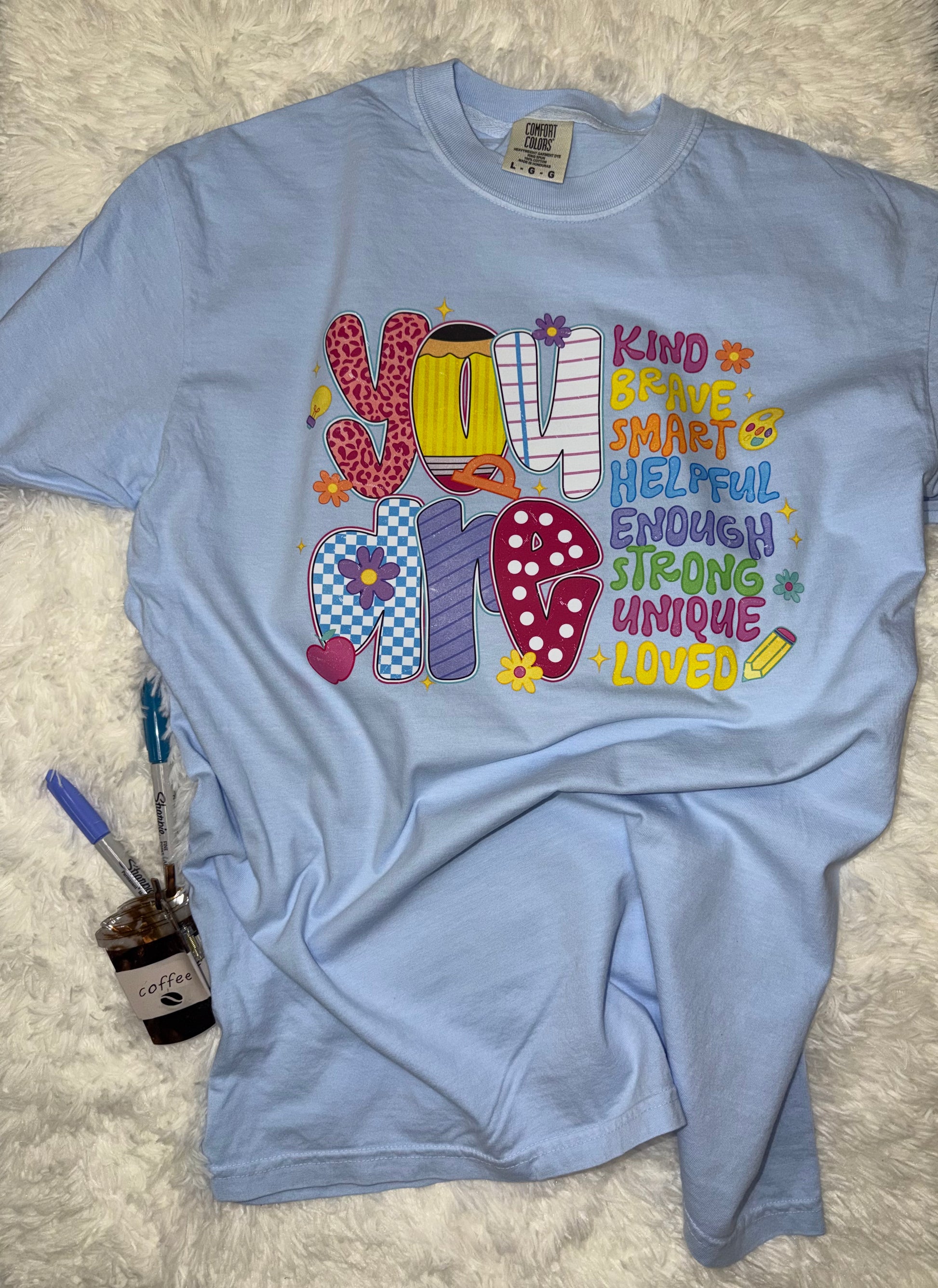 Wear your confidence on your sleeve with this vibrant affirmation tee designed to lift your spirits and spark positivity wherever you go. Featuring an uplifting message that celebrates self-love and empowerment, this comfortable everyday essential pairs perfectly with your favorite jeans or athleisure looks. Soft, breathable fabric keeps you feeling great all day long, while the eye-catching design serves as a daily reminder that you've got this. Perfect for anyone who believes in the power of positive vibes and wants to spread good energy to everyone around them.